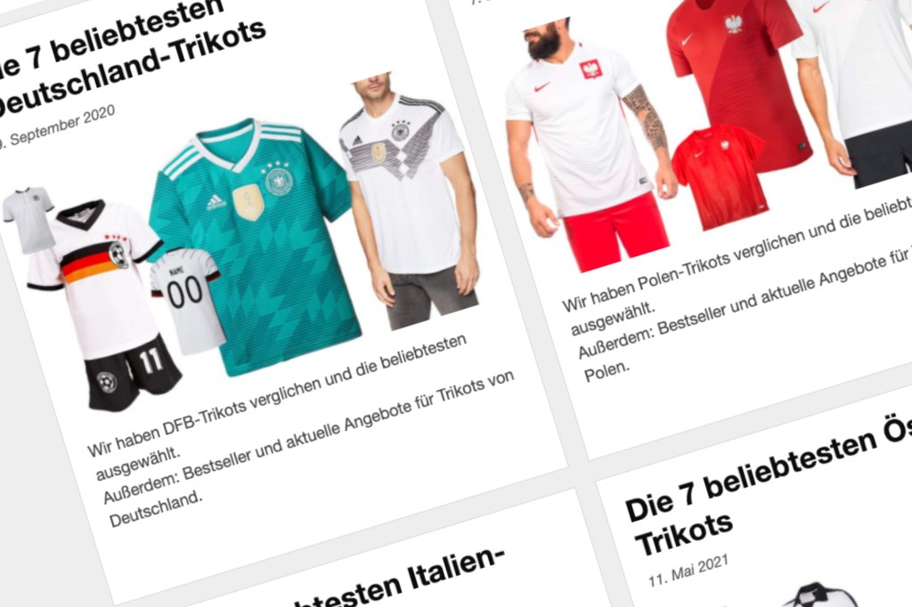 Dennoch verstehe ich die Faszination, die sich aus dem Zirkus ergibt und natürlich die Hingabe an einzelne Spieler. Viele wollen Trikots haben. Und für die habe ich ein paar Empfehlungen zusammengefasst. Alles streng nach Zahlen, Statistiken und SEO-Anforderungen versteht sich. Wer Lust hat, einfach mal reinschauen. Und wenn man die Fußball-Europameisterschaft schon nicht mag, können auch gleich ein paar Jersey mit rein, die mit der Veranstaltung nichts zu tun haben.